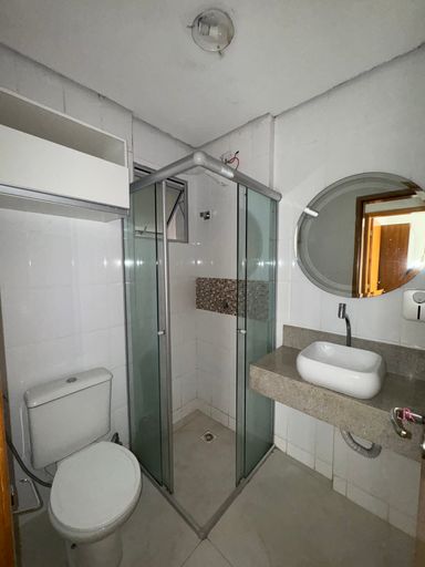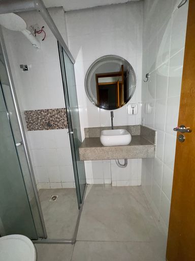 🚿 Banheiro social com cuba moderna, espelho, porcelanato e box de vidro
