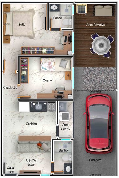 • Sala e cozinha integradas